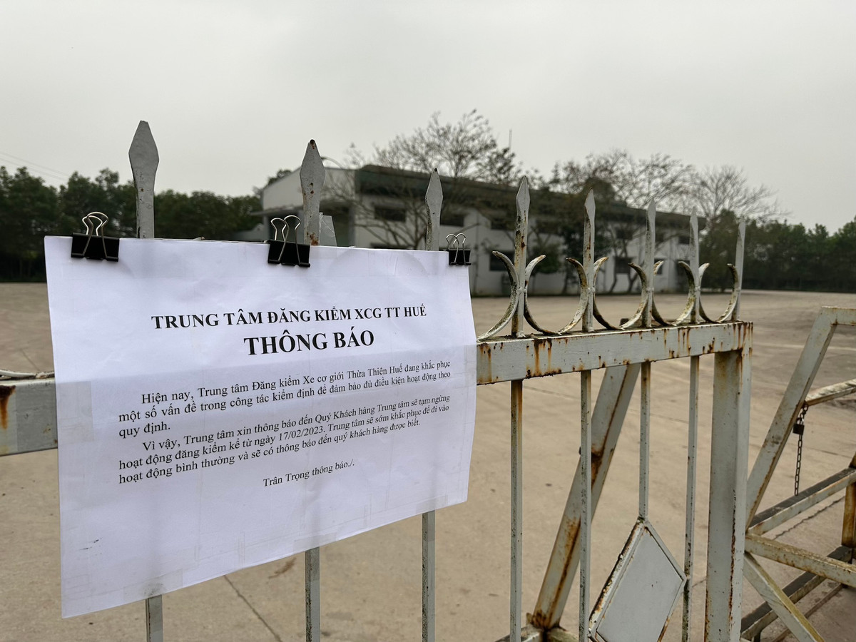 Phía bên ngoài Trung tâm 75.02S dán một tờ thông báo với nội dung: "Hiện nay Trung tâm Đăng kiểm xe cơ giới Thừa Thiên - Huế đang khắc phục một số vấn đề trong công tác đăng kiểm để đảm bảo đủ điều kiện hoạt động theo quy định. Vì vậy, trung tâm xin thông báo đến quý khách hàng trung tâm sẽ tạm ngừng hoạt động đăng kiểm kể từ ngày 17/2/2023. Trung tâm sẽ sớm khắc phục để đi vào hoạt động bình thường và sẽ có thông báo đến quý khách hàng được biết".