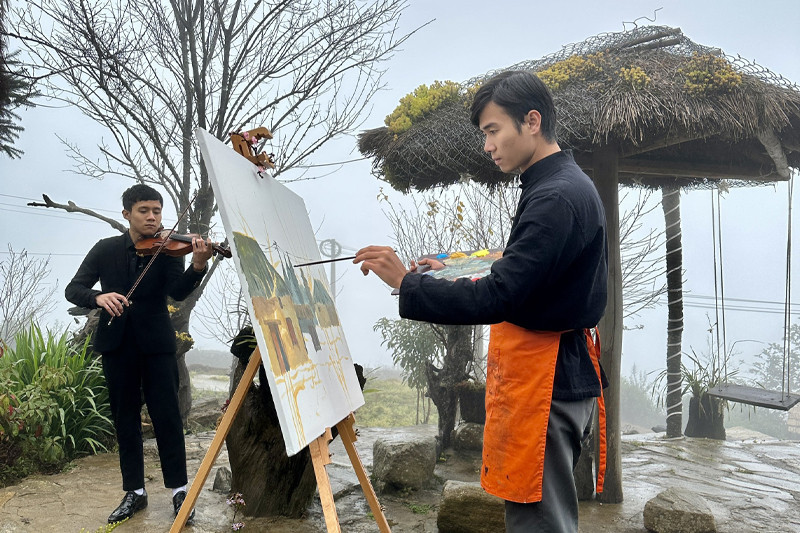 Những bức tranh đầy âm sắc và bản nhạc ngập tràn sắc xuân đã được hai chàng trai trẻ, Vàng Hải Hưng - họa sỹ người Giáy và tài năng violin Nguyễn Văn Trọng hòa trộn một cách hài hòa trong một chương trình truyền hình đặc biệt "Đêm giao thừa 2023".