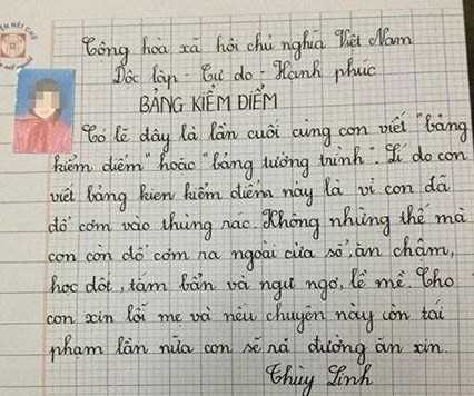 Lời hứa ngô nghê của Linh cuối bản kiểm điểm khiến người xem bật cười. Cô bé viết: "Cho con xin lỗi mẹ và nếu chuyện này còn tái phạm lần nữa, con sẽ ra đường ăn xin". Thuỳ Linh nhận được nhiều thiện cảm từ phía người xem nhờ nét chữ đẹp và lời thú tội thật thà ngoài sức tưởng tượng.