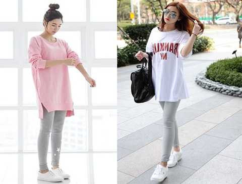 Áo thun oversize rất dễ phối đồ và tiện lợi nhất là "bắt cặp" với quần leggings và giày bata.