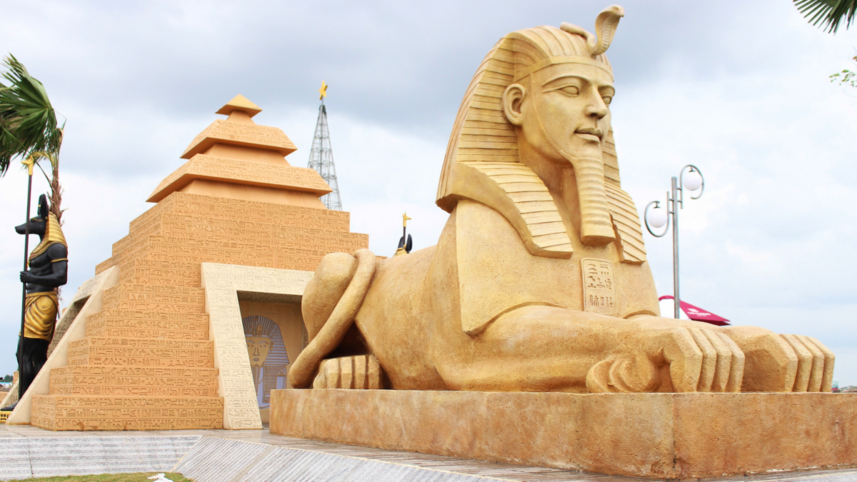 Những kỳ quan cổ đại như: tượng thần Zeus, vườn treo Babylon... xuất hiện ở Hậu Giang với phiên bản thu nhỏ, thu hút đông đảo du khách đến tham quan chụp ảnh.