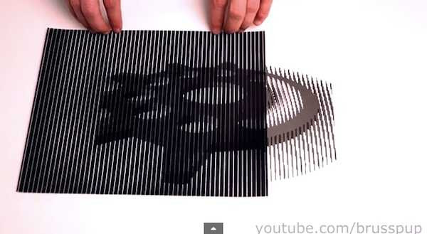 Chỉ cần di chuyển một tờ giấy đặc biệt với các sọc đen và trong suốt xen kẽ đi qua một hình nền có sẵn, bạn đã có thể đánh lừa thị giác người xem ngoạn mục.