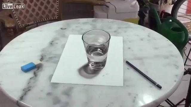 Quá trình vẽ 3D chiếc cốc đặt trên tờ giấy sẽ khiến bạn bị "ảo giác".