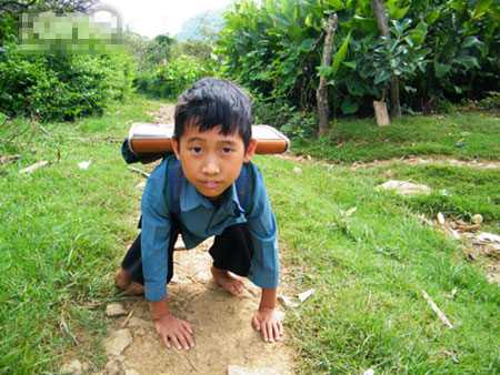 Khi các bạn trong bản cắp sách tới trường, Sáng ngồi một chỗ nhìn theo mà thèm. Không thể cứ nằm mãi với hai chân như vậy, Sáng bắt đầu tập di chuyển bằng cách… bò. Cậu bé 6 tuổi học bò như đứa trẻ 6 tháng.
