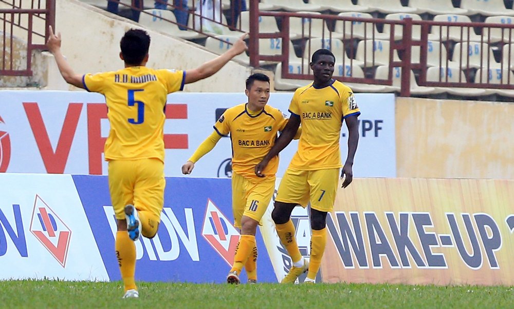 Cú dứt điểm táo bạo từ ngoài đường biên của tiền đạo Olaha bên phía SLNA vào thẳng góc cao khung thành Quảng Nam là bàn thắng đẹp nhất vòng 1 V-League 2019.