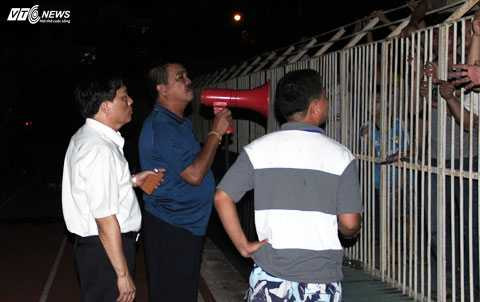 | Bầu Đệ xuống sân xoa dịu sự phẫn nộ của CĐV Thanh Hóa (Ảnh: Nhạc Dương) |