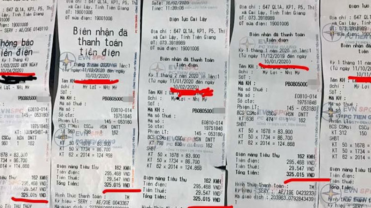 Một hộ dân ở thị xã Cai Lậy (Tiền Giang) phản ánh hoá đơn tiền điện của gia đình 6 tháng liền giống hệt nhau, không sai một số.