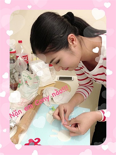 Hoa hậu Ngọc Hân tự tay làm bánh