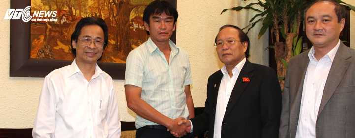 | Bộ trưởng BộVH-TT&DL Hoàng Tuấn Anh tiếp HLV trưởng ĐTVN Phan Thanh Hùng. |