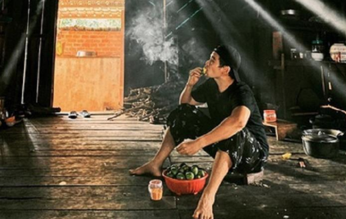 Người được cho là bạn trai của H'Hen Nie vừa chia sẻ hình ảnh ngồi ăn xoài trong căn nhà sàn kèm chú thích: