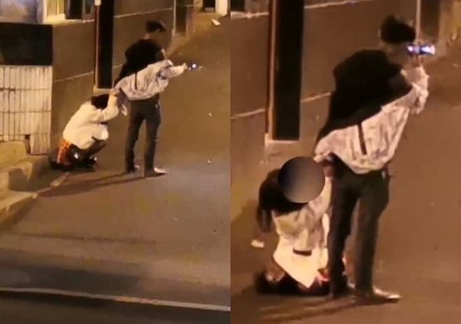 Lúc này, cô gái đã hoàn toàn mất bình tĩnh, quỳ xuống ngay giữa đường và và hét lên: "Em xin anh, đừng nghe tiếp nữa, đừng kiểm tra nữa". Song, mặc cho bạn gái quỳ xuống xin, chàng trai vẫn lạnh lùng không chịu trả lại điện thoại.