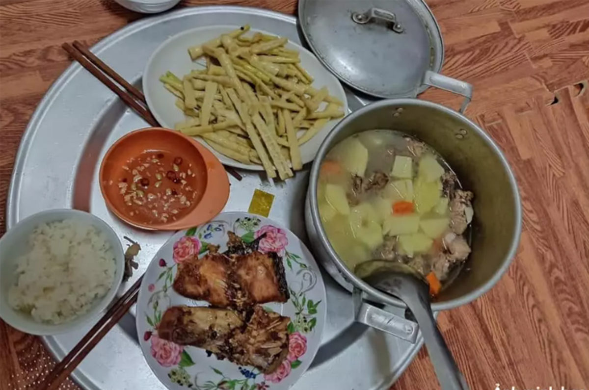 "Có chị em nào để cả nồi ăn như em không ạ? Canh để trong nồi, món luộc hoặc rán thì mới cho ra đĩa, còn canh thì toàn để cả trong nồi luôn.