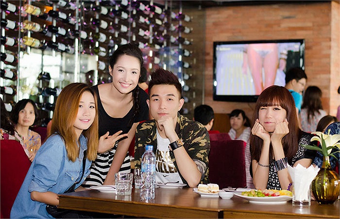 Anh chàng không hề tỏ ra e dè và né tránh mà còn vui vẻ chụp ảnh cùng Anna và gia đình nhạc sĩ Anh Quân - Mỹ Linh.