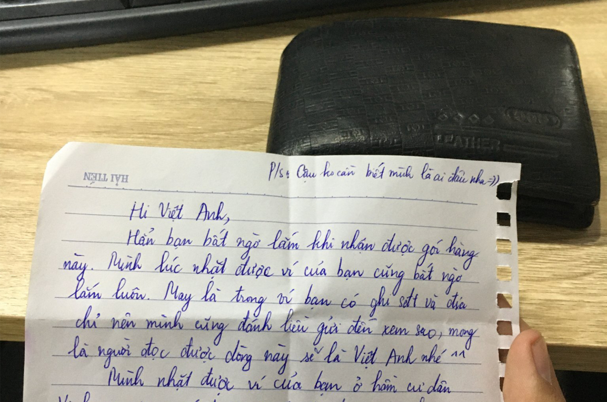 "Mình nhặt được ví của bạn ở hầm cư dân vào cuối tuần trước mà đi công tác hôm nay mới về Hà Nội được. Hẳn là Việt Anh đã lo lắng lắm", một đoạn trong lá thư.