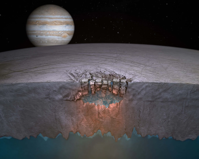 Europa là một trong những mặt trăng lớn nhất trong hệ Mặt Trời và đã có nhiều bằng chứng về đại dương ngầm được chỉ ra. Nó được NASA coi là một trong những nơi tốt nhất trong hệ Mặt Trời để tìm kiếm sự sống ngoài hành tinh. Chính tàu Galileo của cơ quan vũ trụ này cũng nhiều lần hứng trọn một cột hơi nước, có khi mang cả vật liệu hữu cơ, phun ra từ bên dưới bề mặt Europa khi nó bay ngang.