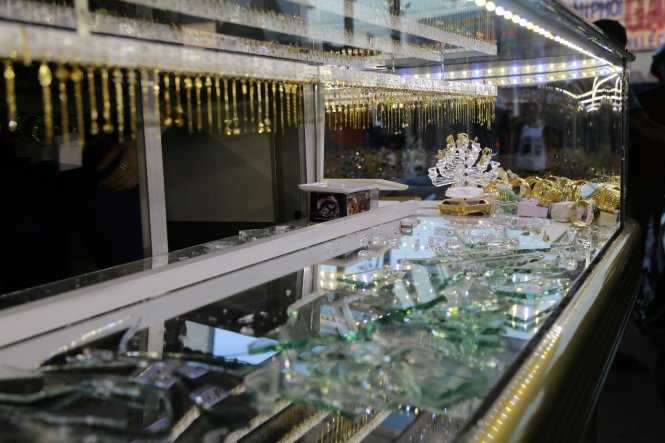 | Tủ kiếng đựng vàng bị đập bể (Ảnh: Bá Sơn) |