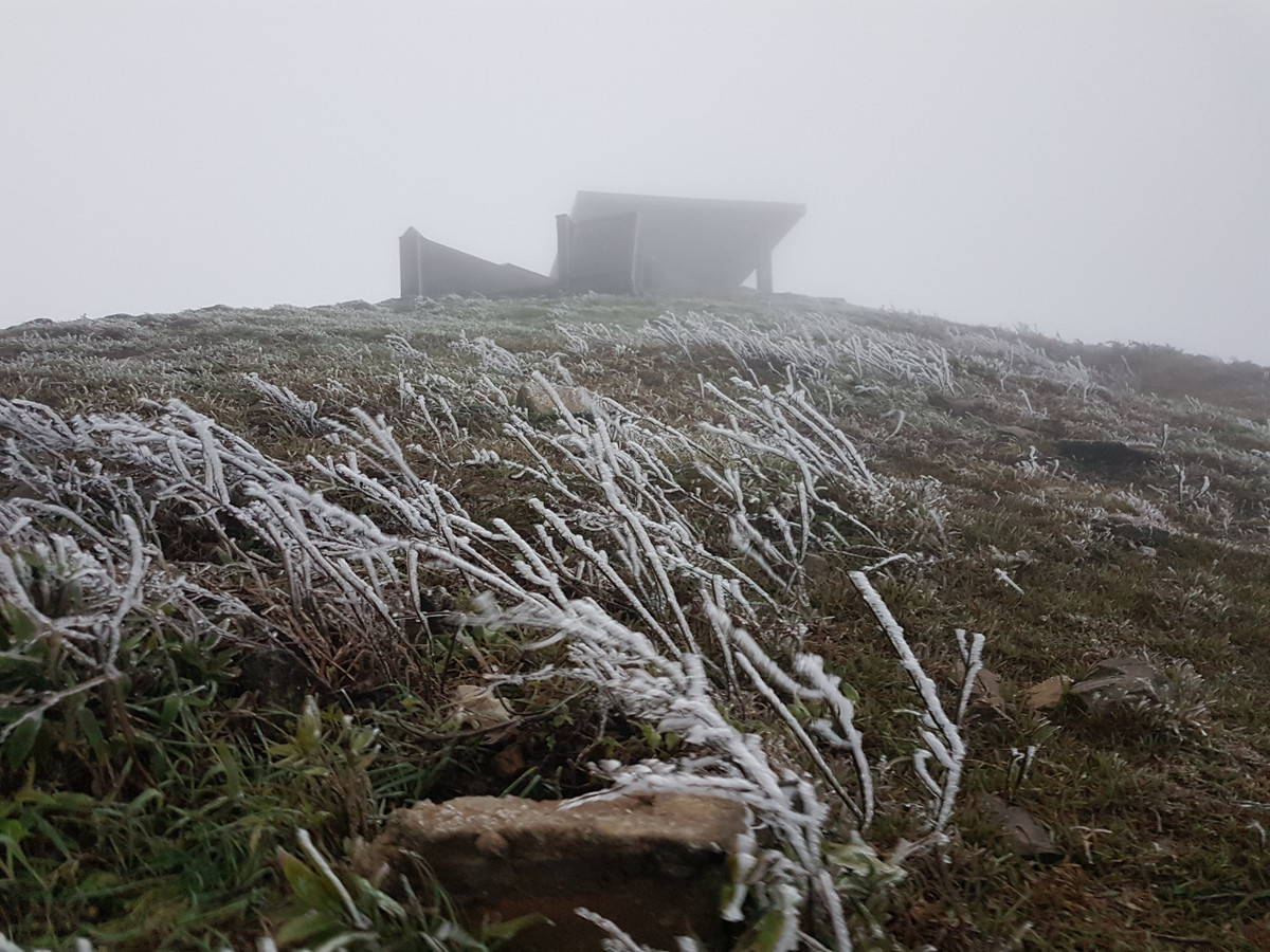Băng giá được dự báo có thể dày lên và khả năng xuất hiện mưa tuyết trên đỉnh Mẫu Sơn. (Ảnh: Hoàng Quốc Huy).
