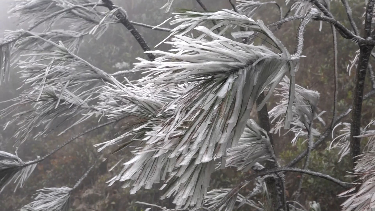 Sáng 22/12, trên các đỉnh núi cao của huyện Mù Cang Chải, Yên Bái đã xuất hiện băng giá với mật độ khá dày đặc.