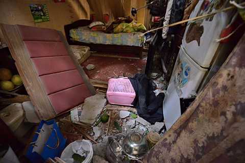| Khối bê tông rơi trúng nóc nhà của người dân |