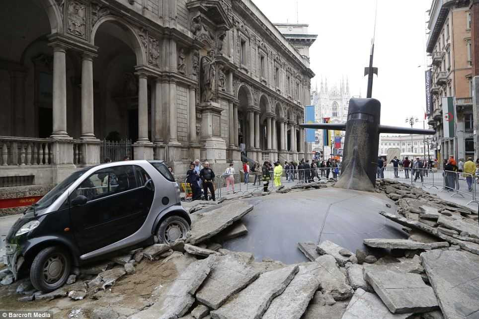 (VTC News) - Người dân thành phố Milan, Ý bị một phen bàng hoàng khi chứng kiến chiếc tàu ngầm nổi lên giữa đường phố, va chạm với một ô tô.