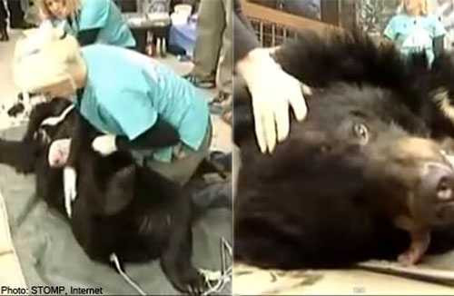 Quá đau đớn, gấu thường tìm cách đánh bụng mình để tự tử. Để ngăn chặn điều này, chúng bị đeo khung sắt vào cơ thể.