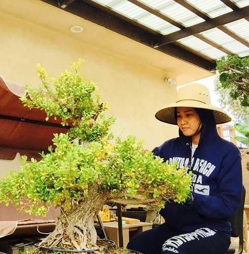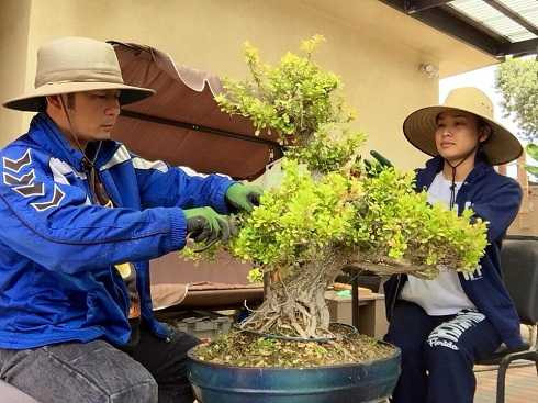 | Bằng Kiều đăng ảnh bạn gái Dương Mỹ Linh đang cùng anh chăm sóc vườn bonsai. Nam ca sĩ hạnh phúc khoe với người hâm mộ: "Bạn ấy bắt đầu bonsai, có chết tôi không chứ?" |
