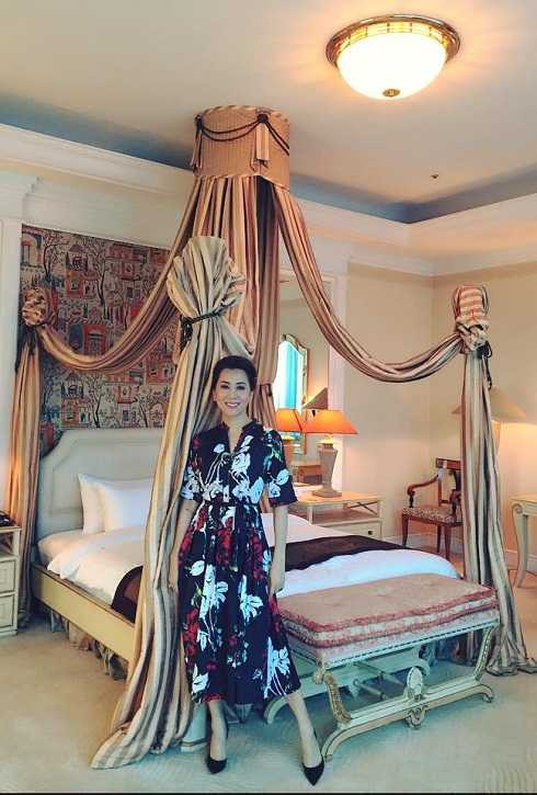 | Kỳ Duyên tạo dáng trong căn phòng Tổng thống trong một khách sạn sang ở Hà Nội. |