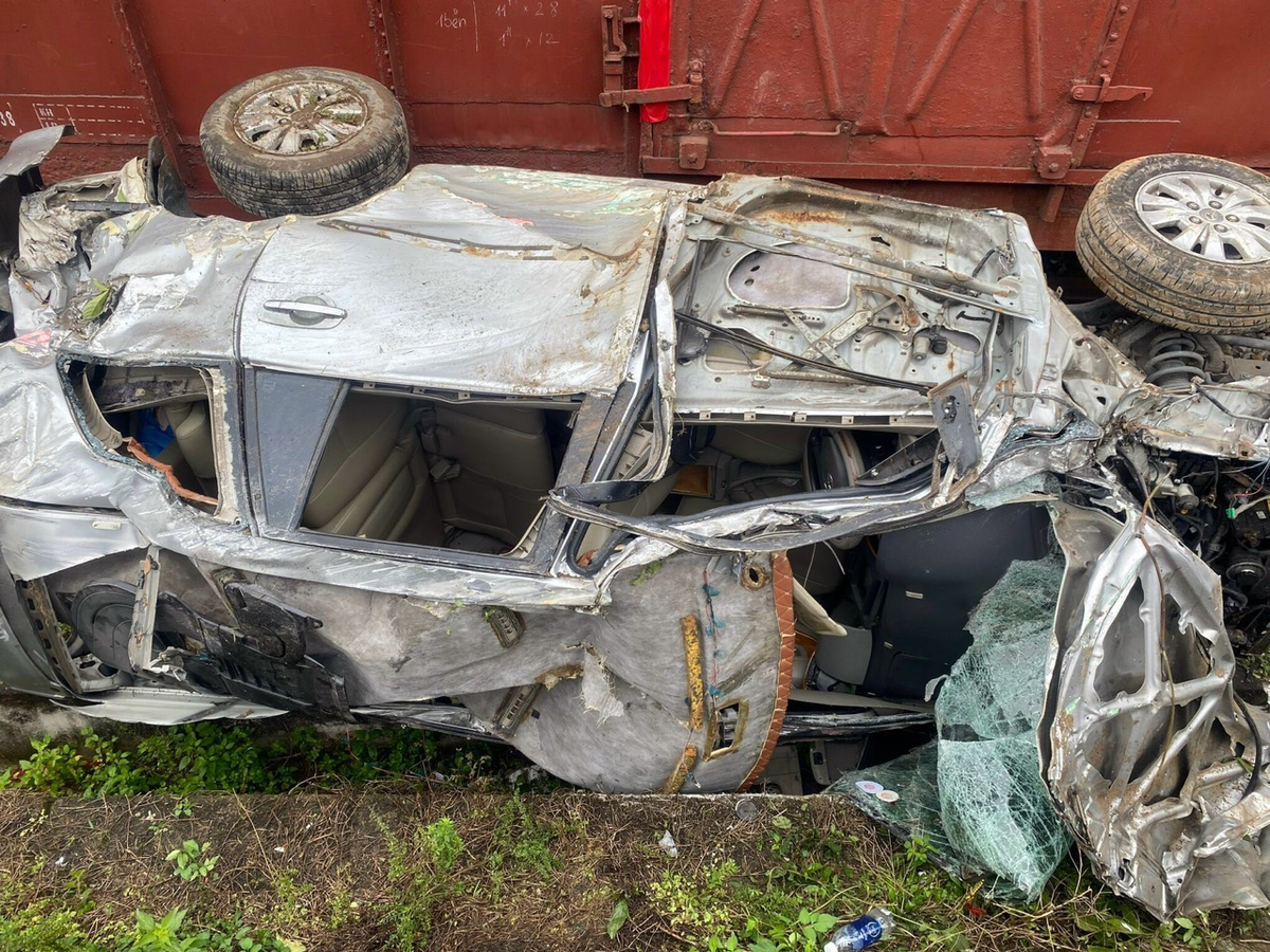 Chiếc ô tô bẹp dúm sau cú tông tàu hoả.