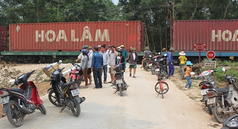 | Nhiều tuyến đường sắt giao với đường ngang dân sinh ở Diễn Châu không có rào chắn |