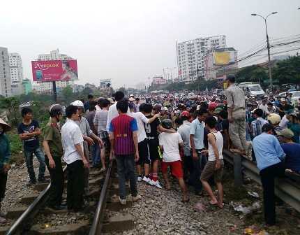 Vụ việc xảy ra vào khoảng15h40 phút (16/4), tại đường sắt đoạn đi qua bến xe Nước Ngầm (Giải Phóng, quận Hoàng Mai, Hà Nội )