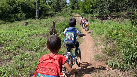 Một đèn pin, chiếc xe đạp cũ và cặp sách trên vai... đều đặn cứ 3 - 4h sáng từ thứ hai tới thứ sáu hằng tuần, những học sinh ở thôn H'Mông, xã Ea Kiết, huyện Cư M'Gar (Đắk Lắk) lại băng rừng đến trường.