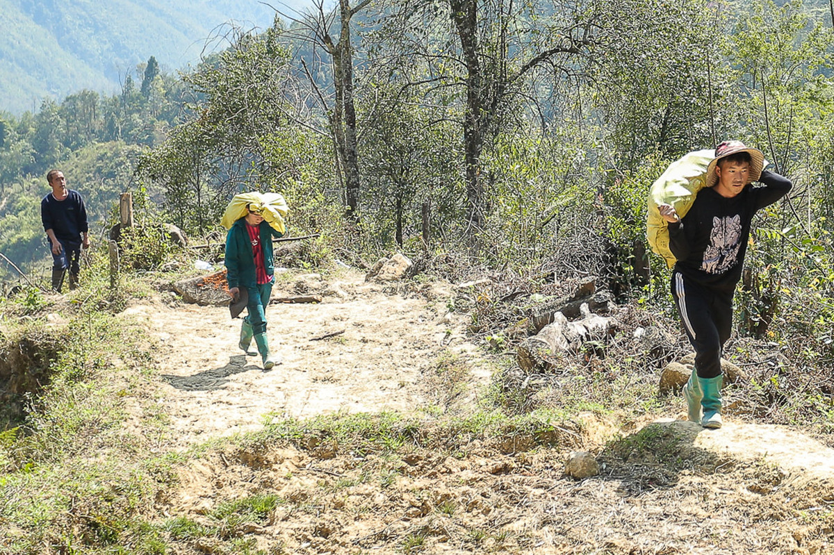Đoàn tiếp tế có gần 50 người, là những người có sức khỏe tốt. Đường núi gập ghềnh, dốc đứng, còn phải mang vác thêm đồ nặng nhưng lực lượng hậu cần không nề hà.