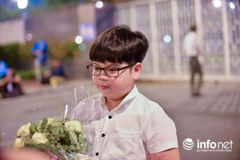 Nam sinh may mắn này là thành viên nhỏ tuổi nhất đoàn ra đón tổng thống Mỹ. Cậu là Nguyễn Như Khôi, 11 tuổi, học lớp 6A2 trường THCS Chu Văn An, Hà Nội.