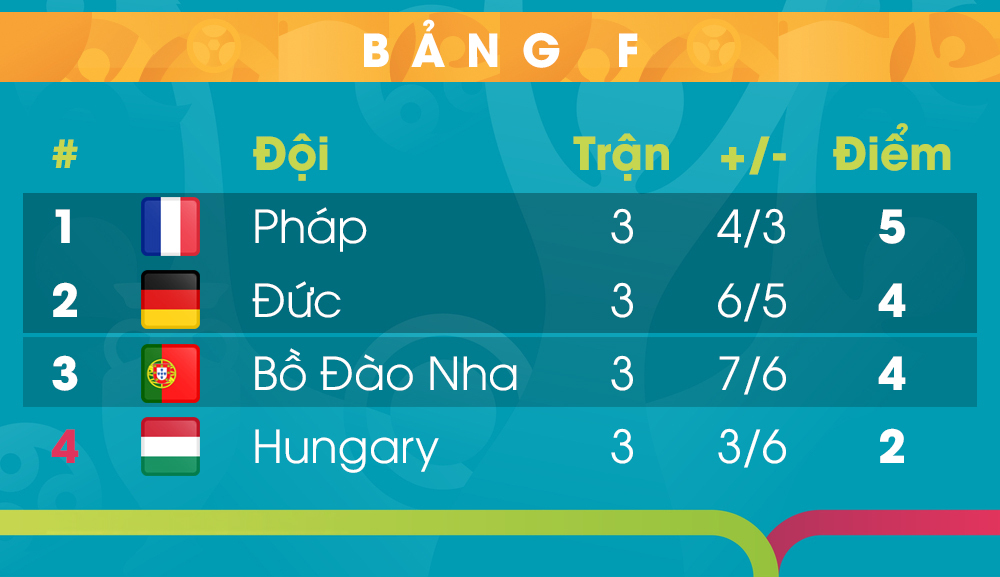 Bảng F kịch tính đúng như những gì người hâm mộ mong đợi ở bảng "tử thần". Hungary bị xem là yếu nhất bảng nhưng vẫn khiến cho 3 đội bóng lớn phải chật vật, góp phần quan trọng tạo ra diễn biến nghẹt thở ở lượt đấu cuối cùng.