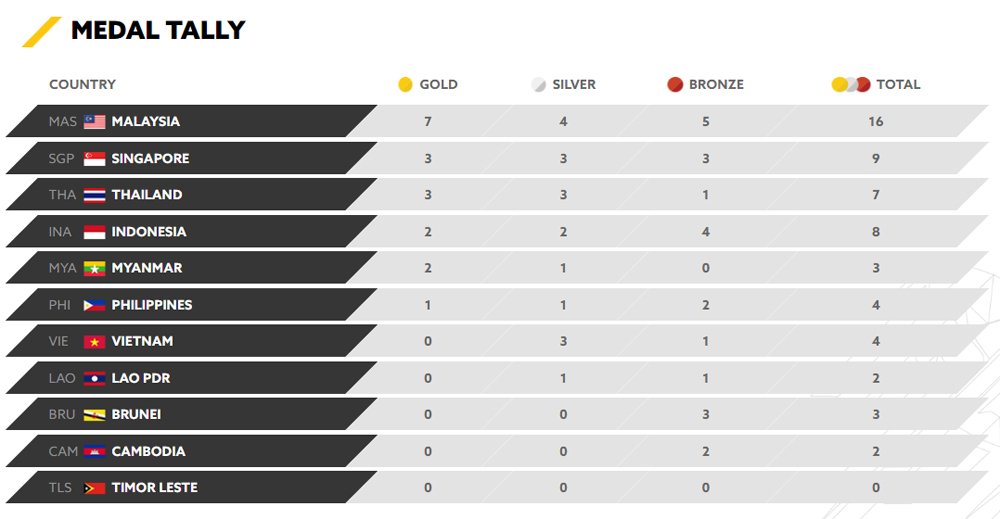 Bảng xếp hạng huy chương Seagame 29 được cập nhật liên tục.