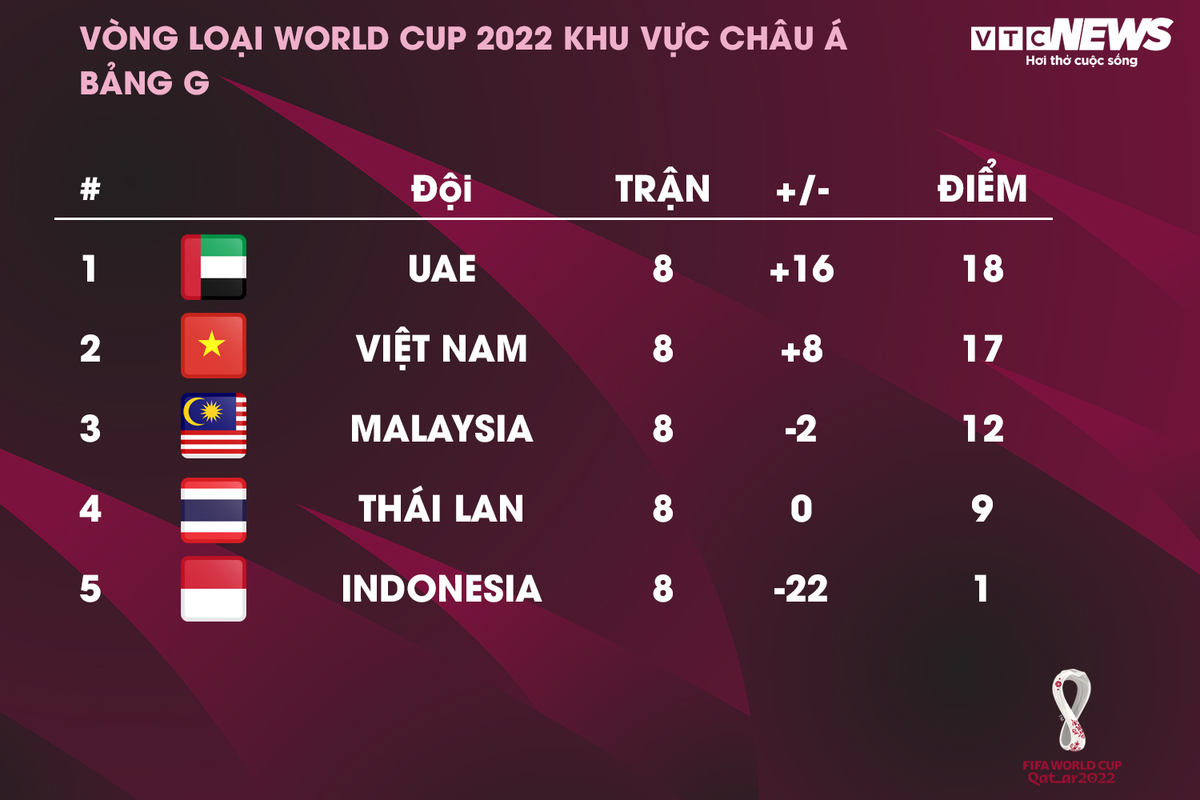 Đội tuyển Việt Nam không duy trì được thành tích bất bại và mất ngôi đầu bảng G sau trận thua UAE 2-3 ở lượt cuối. Tuy nhiên, HLV Park Hang Seo và các học trò vẫn làm nên lịch sử khi lần đầu tiên giành quyền vào vòng loại cuối World Cup 2022.