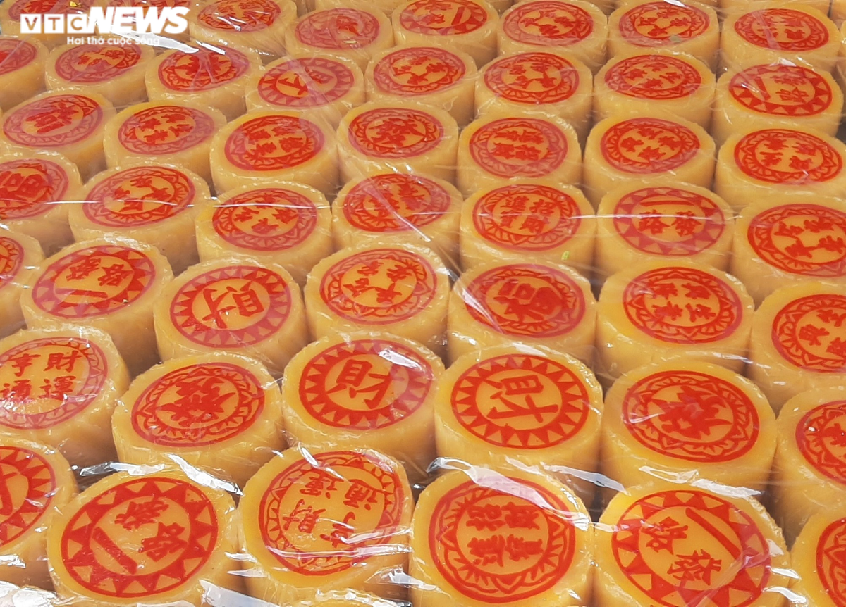 Những ngày giáp Tết hay trong Tết, chỉ cần đi dọc các con phố khu Chợ Lớn, Sài Gòn không khó để bắt gặp những chiếc bánh tổ vàng tươi, in hoa văn đỏ được bày bán.