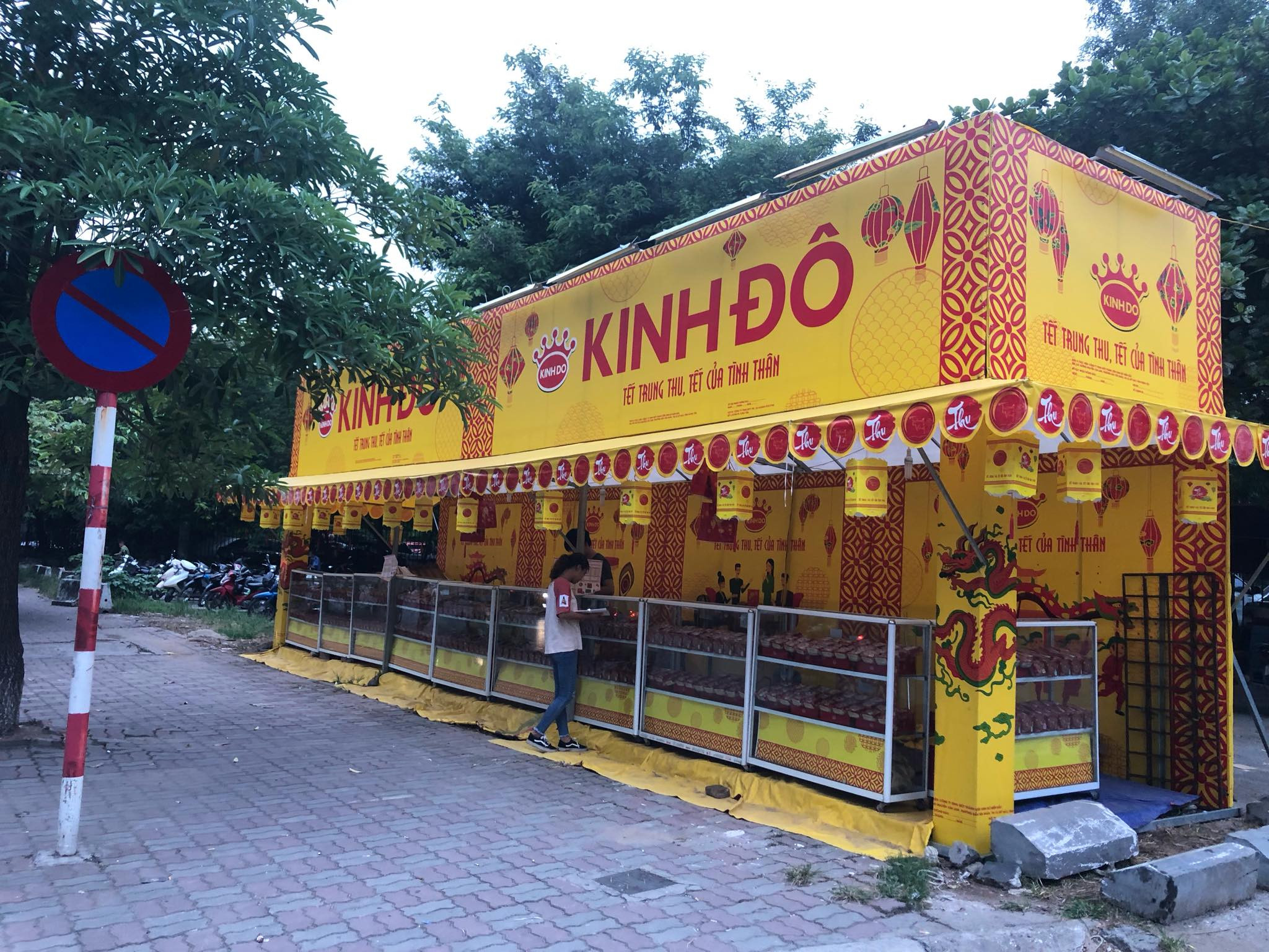 Khảo sát của VTC News cho thấy, nhiều quầy bánh Trung thu đã xuất hiện trên vỉa hè các tuyến phố Hà Nội như Lạc Trung, Thanh Nhàn, Thụy Khuê…Phần lớn các quầy này là của thương hiệu Kinh Đô.