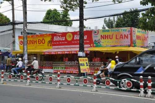 Một số tiệm bánh Trung thu trên đường Lý Thường Kiệt (quận 11) treo bảng hạ giá mua 1 tặng 1, trong khi đó, cửa hàng bán bánh của cùng hãng trên đường Tô Hiến Thành (quận 10) treo bảng mua 1 tặng 2. Một hộp bánh Trung thu đại hạ giá còn 185.000 đồng/hộp/4 bánh, tính ra một cái bánh chỉ xấp xỉ 50.000 đồng nhưng người mua vẫn chỉ lác đác.