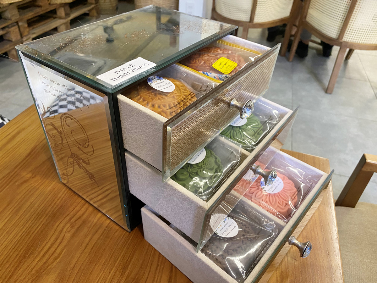 Những hộp bánh Trung thu xịn sò có giá vài triệu đồng xuất hiện tại thị trường TP.HCM. (Ảnh: Đại Việt)