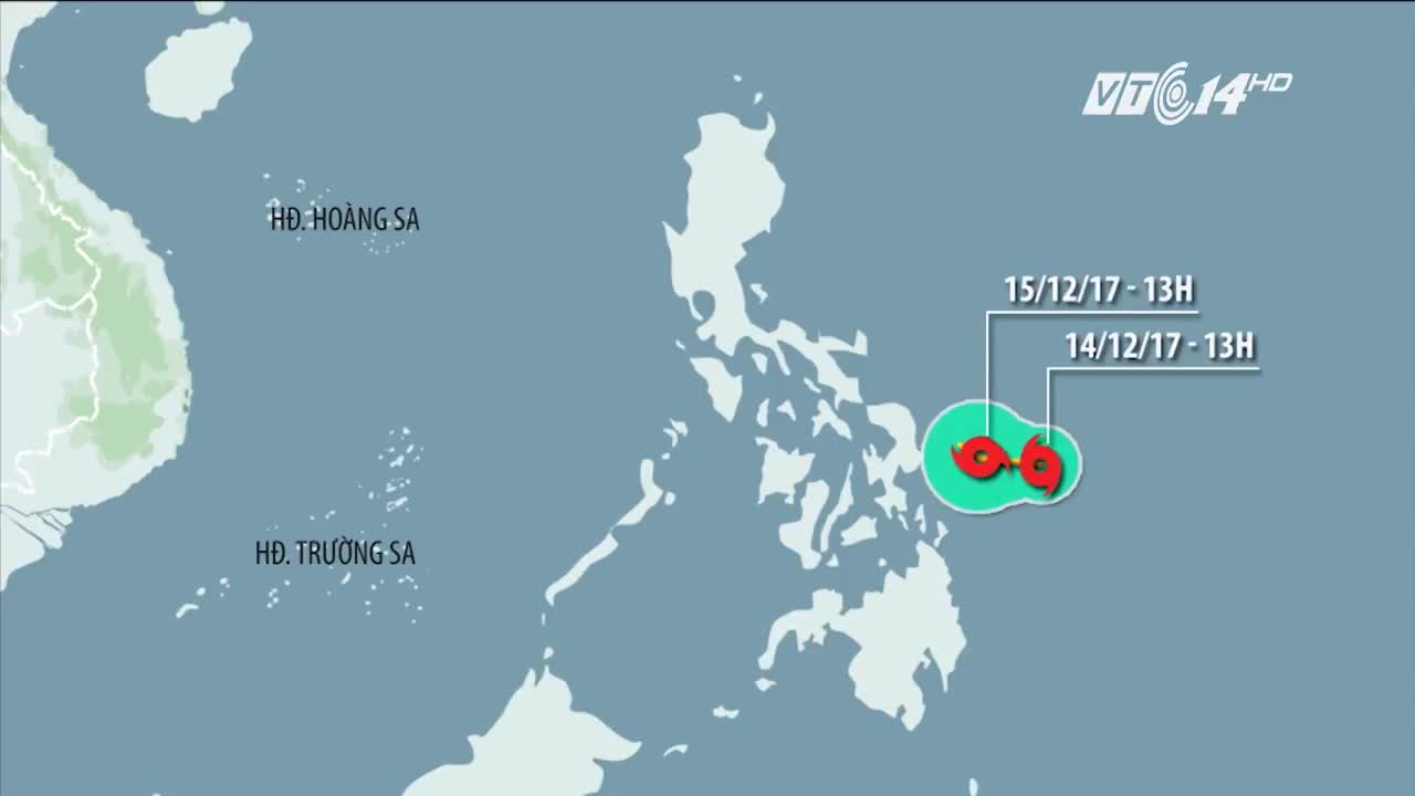 14/12/2017 22:03:00 +07:00Áp thấp nhiệt đới ở bờ biển miền Trung Philippine mạnh lên thành bão, có tên quốc tế là Kai – tak, bão di chuyển rất chậm nên khoảng 4 ngày nữa mới đi vào biển Đông.
