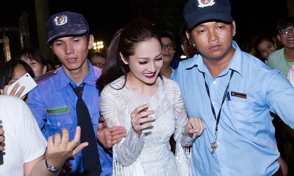 Bảo Anh kẹt cứng giữa vòng vây fan.