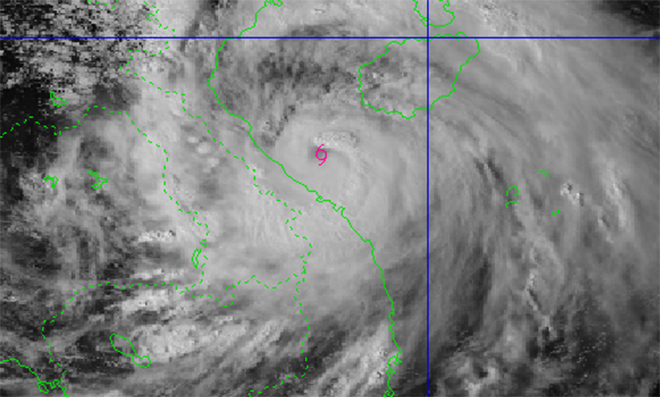 Lúc 20h, vị trí tâm bão số 10 Bualoi trên vùng ven biển Nghệ An - Bắc Quảng Trị. Sức gió mạnh nhất vùng gần tâm bão mạnh cấp 12 (118-133km/h), giật cấp 15. Dự báo trong 3 giờ tới, bão di chuyển theo hướng Tây Tây Bắc, tốc độ khoảng 20-25km/h.