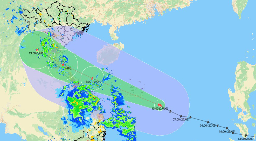 Dự báo sáng 28/9, bão số 10 Bualoi di chuyển vào vùng biển miền Trung. Khoảng tối đến đêm 28/9, bão đi vào đất liền khu vực Nghệ An-Bắc Quảng Trị.