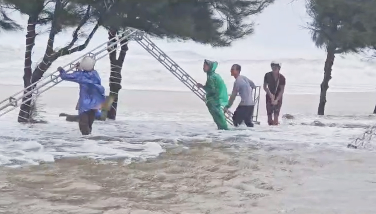Bão số 10 Bualoi có hoàn lưu khá rộng, từ trưa 28/9 gây gió mạnh cấp 6-7 trên vùng rộng từ Thanh Hoá đến Bắc Quảng Trị. (Ảnh: Hoàng Hà)