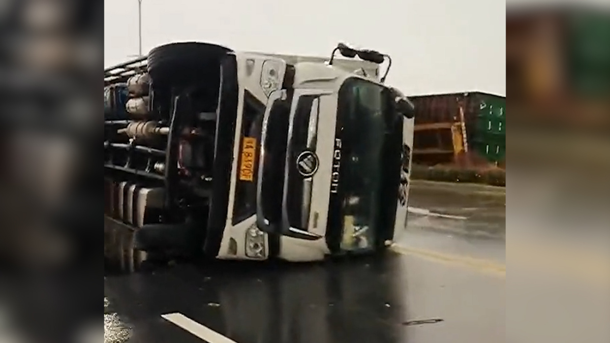 Cơn bão dữ dội càn quét tại Nam Xương (Giang Tây, Trung Quốc) khiến 10 xe đầu kéo ngã nhào nằm la liệt bên đường.