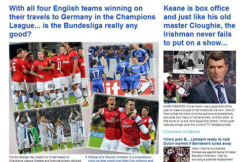 Tuy nhiên, báo chí Anh lại chẳng coi bóng đá Đức, mà cụ thể là Bundesliga ra gì. Trên tờ Daily Mail ngày hôm nay có một bài báo đáng chú ý: "Cả 4 đội bóng Anh đều giành chiến thắng trên đất Đức. Bundesliga có thật sự đáng sợ?"