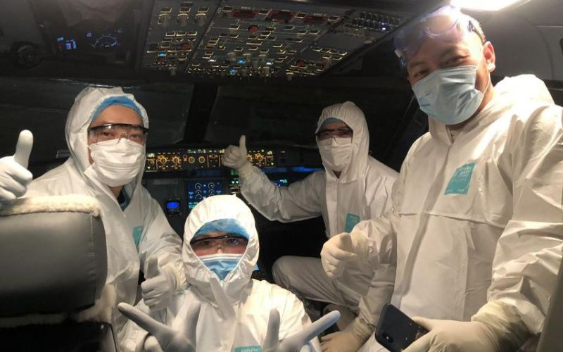 Phi hành đoàn thực hiện chuyến bay đưa người Việt Nam từ Vũ Hán (Hồ Bắc, Trung Quốc) về nước.