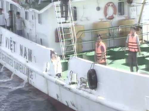 | Tàu hải cảnh Trung Quốc chuẩn bị đâm tàu Việt Nam |