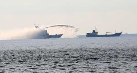| Tàu Trung Quốc dùng vòi rồng tấn công tàu chấp pháp của Việt Nam ở gần khu vực Trung Quốc triển khai trái phép giàn khoan dầu. Ảnh: Reuters |